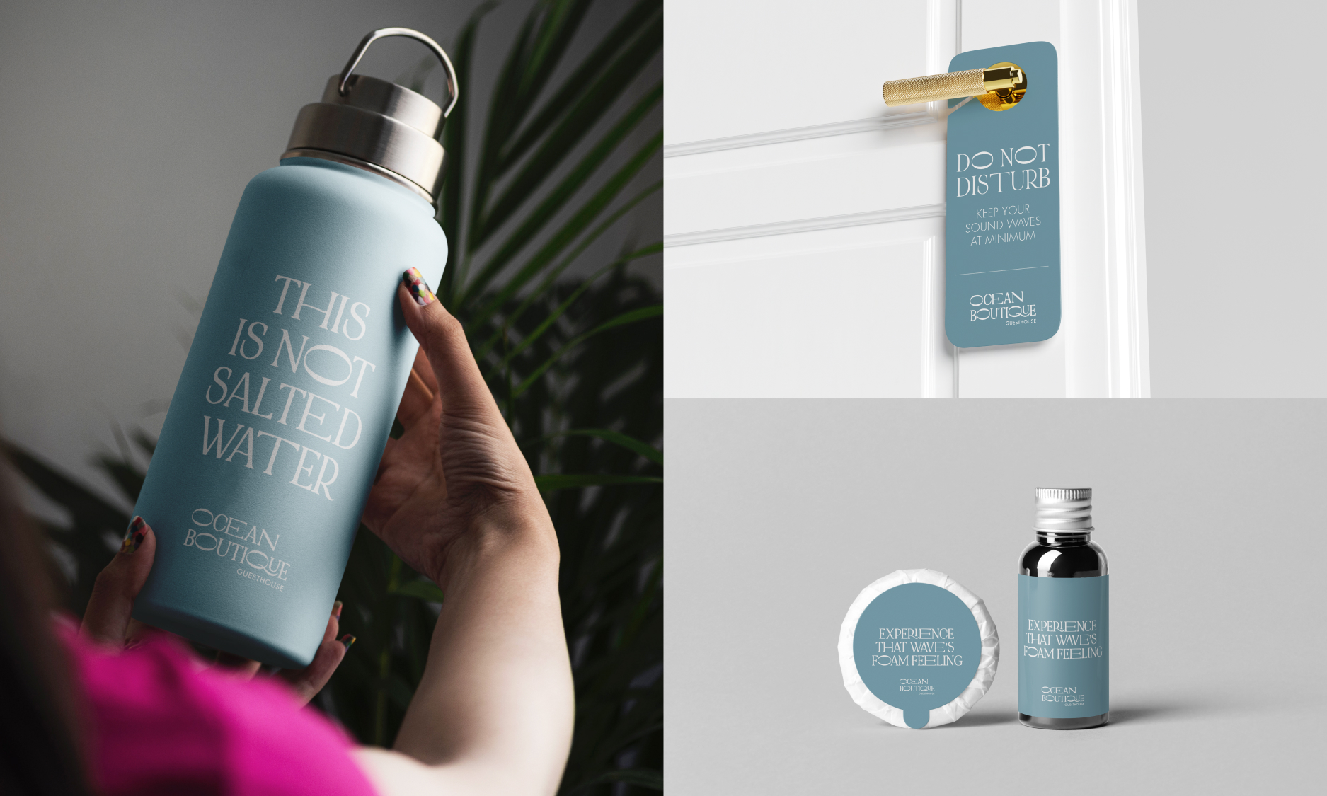 The identity of the Ocean Boutique Guesthouse is not only visual, it is sensorial. Like the sea, it surrounds without imposing. It is a branding that breathes, inviting guests to slow down, to contemplate, and to experience Porto in a unique way.